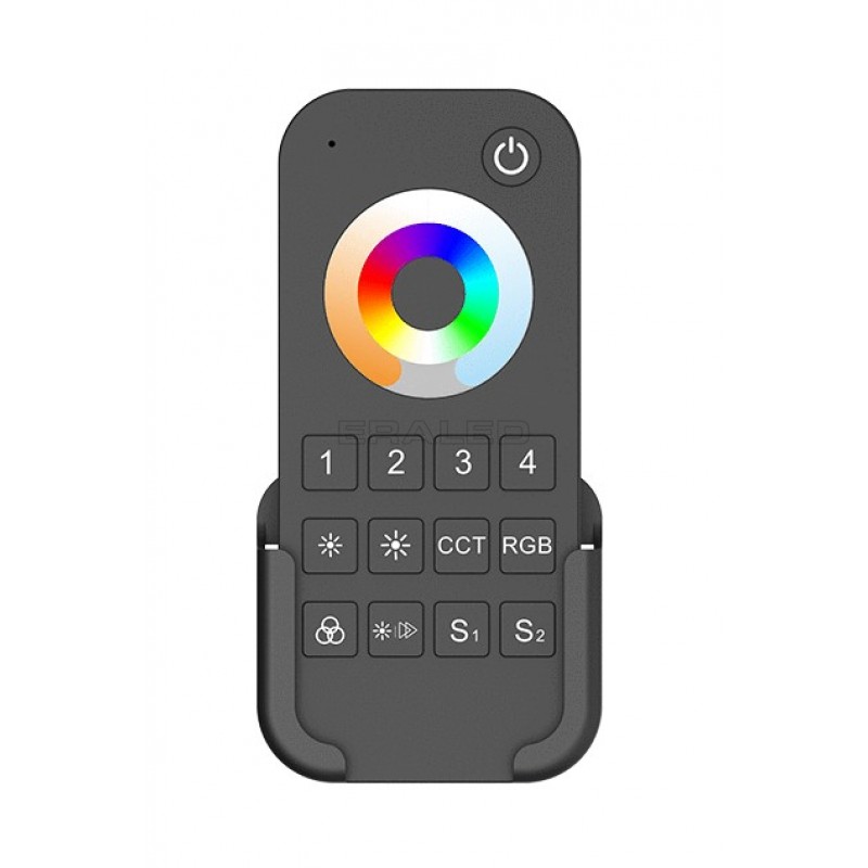 - Tenký, univerzálny štvorzónový RF diaľkový ovládač pre RGB/CCT LED svietidlá.